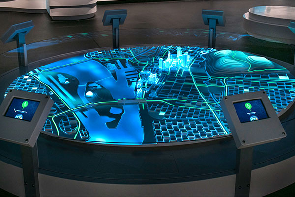 交互功能:參觀者可以通過(guò)觸摸屏選擇不同的規(guī)劃方案,查看其對(duì)城市的影響。